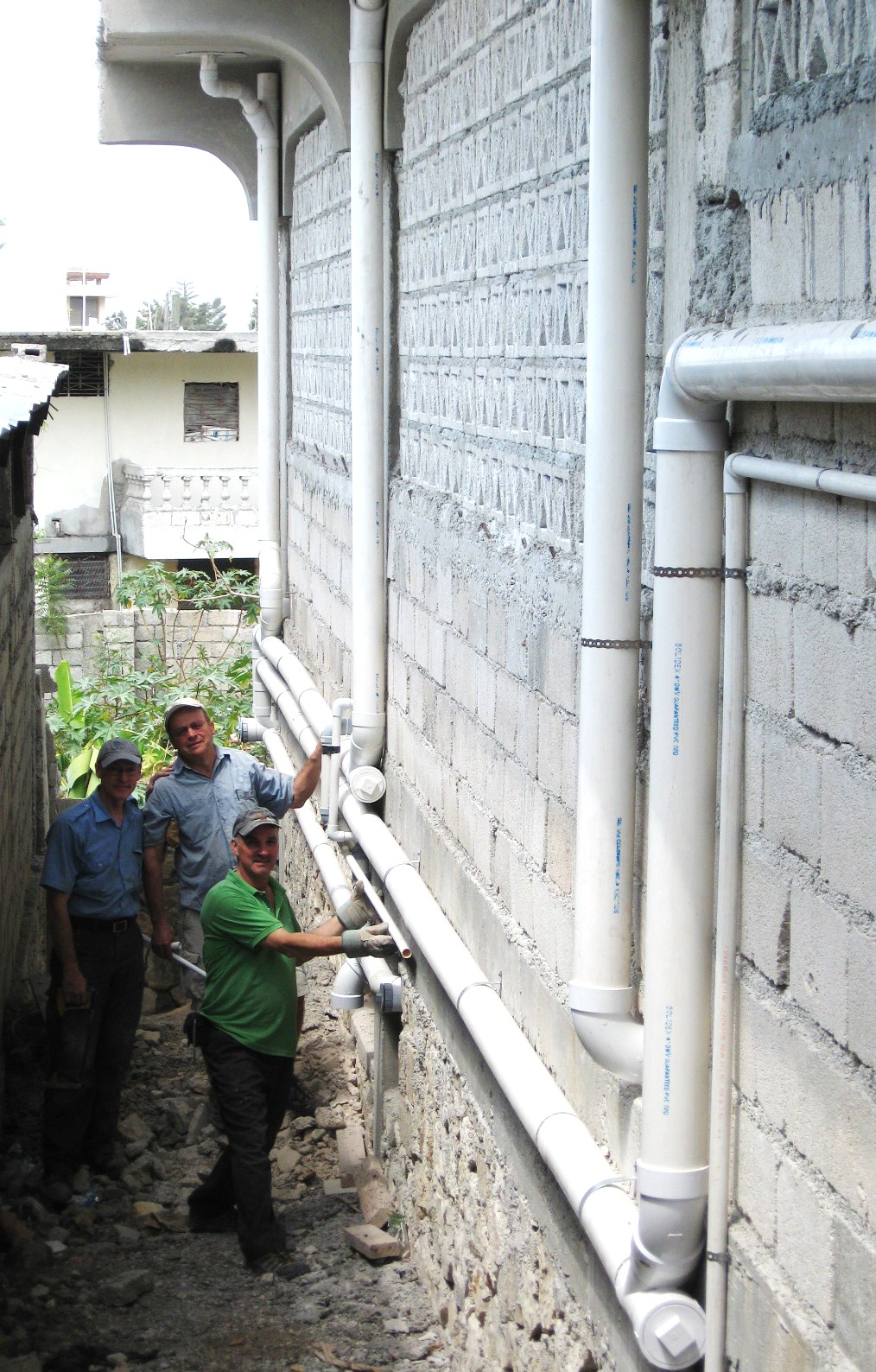 Les Plombiers Sans Frontière de Trois-Rivières ont fait un travail de titan. Ils ont installé la plomberie dans les salles de bain et pour la récupération de l’eau de pluie et l’alimentation de la pompe à eau au robinet.