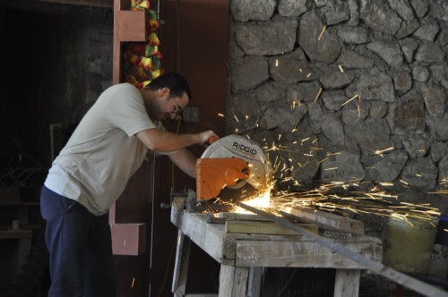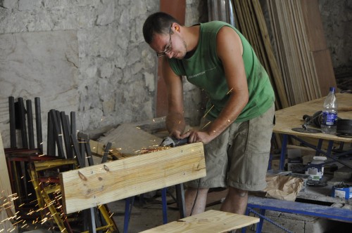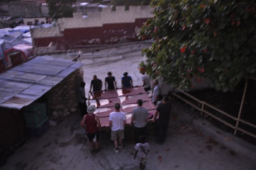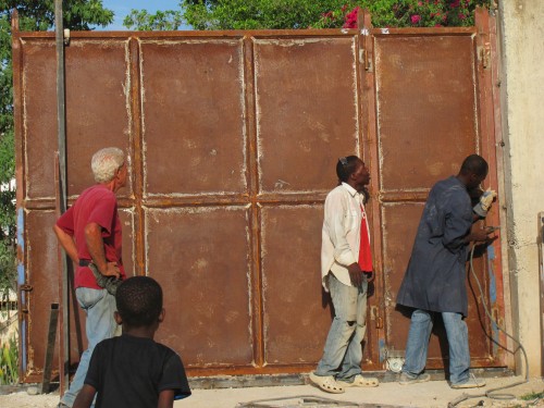 A 5h00 du matin, alors que presque tout le monde dort, les hommes de l’équipe ont chargé le portail de l’église sur notre camion pour qu’il soit installé.