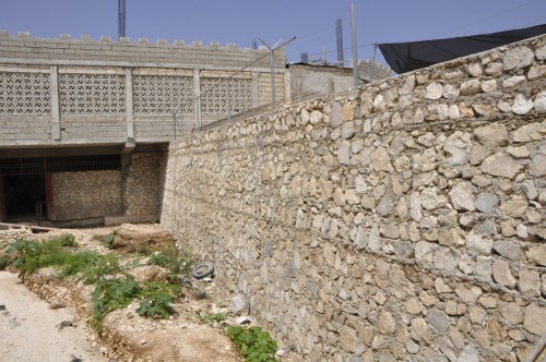 Mur de pierres soutenant la cour de récréation