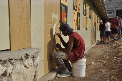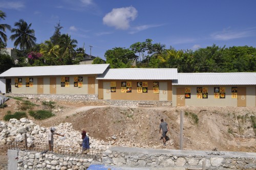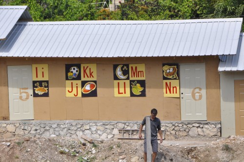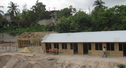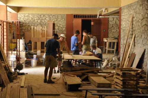 Un groupe de menuisiers haïtiens travaillant chez Maxima, une usine de fabrication de maisons préfabriquées, a construit cinq classes en huit jours.