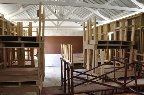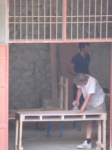 L’équipe de Disraéli et de Ste-Foy, composée de 8 hommes a fabriqué des bancs et pupitres pour 200 places en six jours. Jean-Charles (chapeau off white) est maître menuisier.