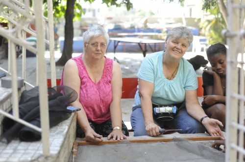 Dot & Noreen sont deux sœurs d’Ontario. Elles ont cousu des rideaux pour le bureau et une terrasse. Dorothea a aussi apporté la Parole aux filles et aux enfants de 7 à 12 ans.