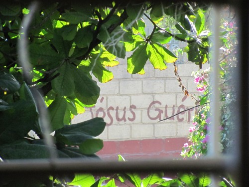 En faisant mes exercices matinaux pour tenter de guérir de ma tendinite, j’ai vu ces paroles de la fenêtre de notre chambre me sauter aux yeux: «Jésus guérit». Pourtant je les ai vues des centaines de fois écrites sur le mur de notre rue. Mais soudainement, elles sont devenues vivantes à mes yeux. J’espère bien avoir de bonnes nouvelles la prochaine fois.
