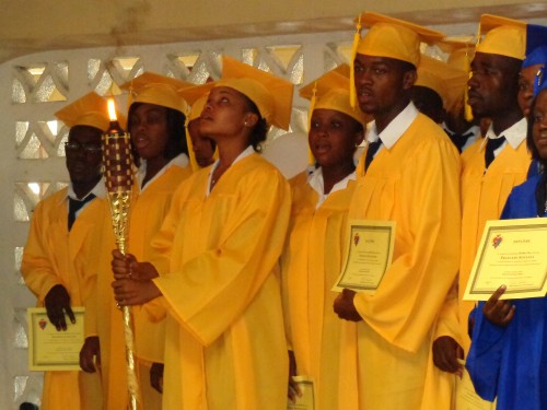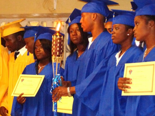 Graduation 2012. Une des étudiantes de 13e année s’apprête à passer le flambeau à la classe de 12e année.