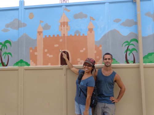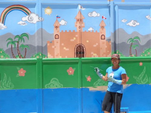 Janice Barber de Mississauga, Ontario, a peint ce château sur le portail de notre centre. Janice était venue visiter James, son mari, qui travaillait sur la construction du centre pour la compagnie Authentic Haiti. Janice étudie en Arts à l’université de Toronto.