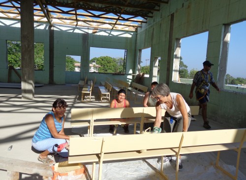 Les dames du groupe, en plus de faire des visites aux maisons et d’enseigner l’école du dimanche, ont repeint 96 bancs!