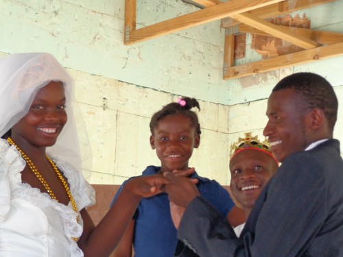 Jessika Pierre (au centre) et ses petites sœurs étaient à notre première réunion d’Église en octobre 1997. Jessika, âgée de 10 ans sur la photo, a gradué de la 13e année en juillet dernier. Quand elle avait douze ans, sa mère est décédée des conséquences du Sida. Son père, originaire des Bahamas, ne s’est jamais occupé d’elle. Au décès de sa mère, la famille a essayé de les placer dans un orphelinat elle et ses sœurs. Étant trop âgées pour l’orphelinat, Jessika et sa sœur Johanne ont été envoyées chez leur grand-oncle à 7 heures de route de Port-au-Prince. Les plus jeunes sont allées à l’orphelinat. Nous étions alors au Canada pour un an et nous n’avons pas pu nous occuper d’elles. Malheureusement la plus jeune y est décédée du sida à l’âge de cinq ans. Quelques années plus tard, nous avons facilité leur retour dans la maison maternelle à Port-au-Prince.