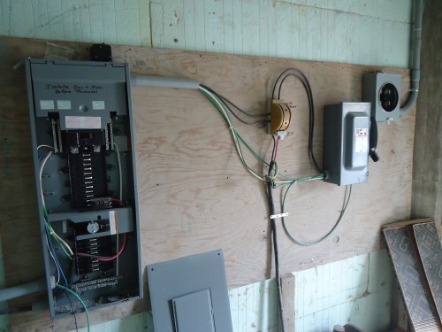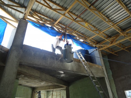 Installation de la boîte électrique qui amènera le courant à notre centre.