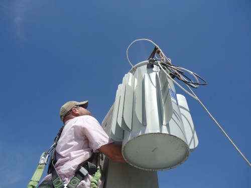 Roy, un électricien chevronné, perfore une colonne pour installer un transformateur.