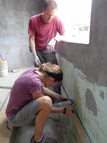 Perforation des murs pour amener le courant électrique dans les différentes pièces du building.
