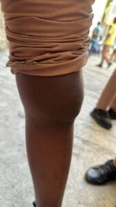 Océan (14 ans) a reçu un coup de ballon de soccer au genou, qui s’est mis à enfler au point qu’il ne pouvait plus plier la jambe. Il a reçu les soins nécessaires pour traiter son entorse.